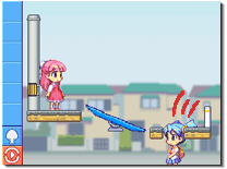 However, this game isn't a platformer as such, it can be described as a "Rube Goldberg" game, in that you place objects in any location you want and run a "simulation" where Himawari will continue to walk in a straight line; Where she ends up will be dependent on which items you've used and where!